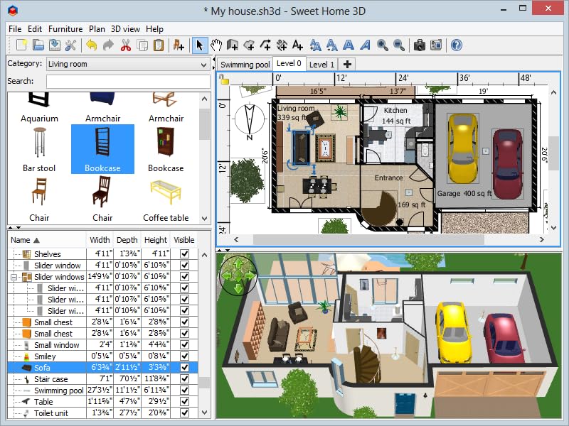 Sweet Home 3D is an easy to learn interior design application that helps you draw the plan of your house in 2D, arrange furniture on it and visit the results in 3D.